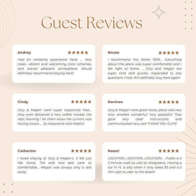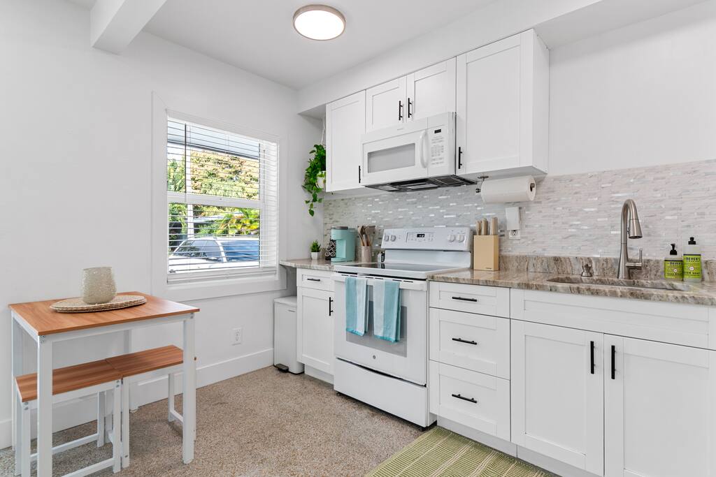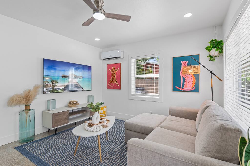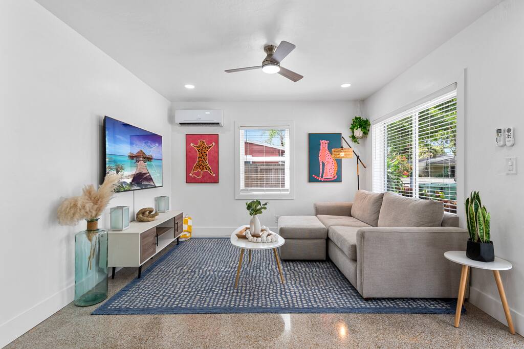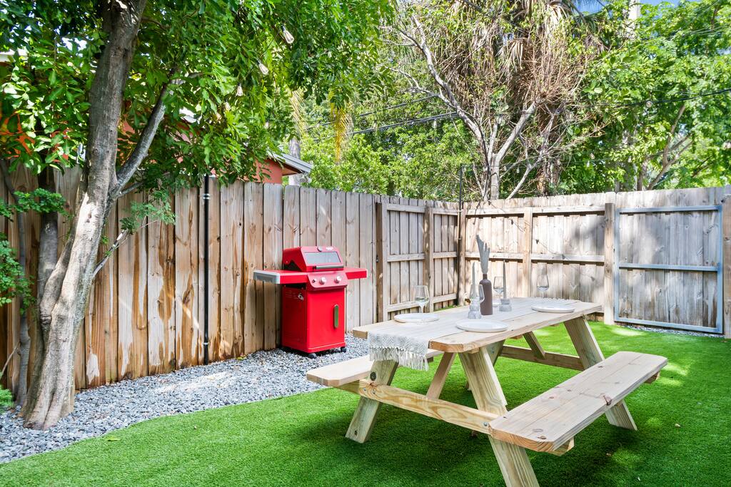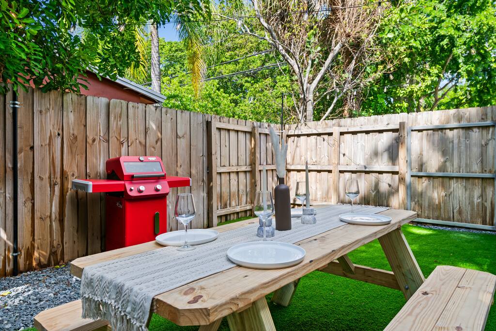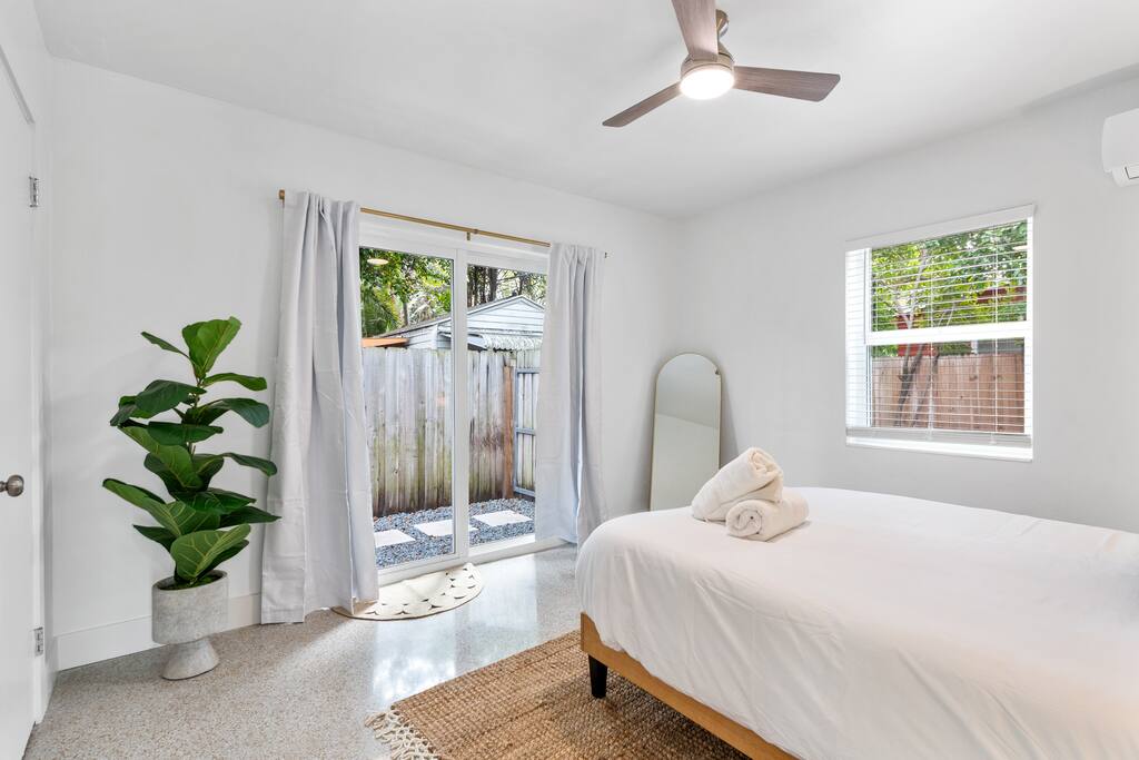 Welcome to The Green Cheetah — a modern 1BR private guest suite with hotel-quality finishes and a huge fully-private turf yard designed for sunshine, grilling, and relaxing under the string lights. Located in one of Fort Lauderdale’s most convenient and walkable neighborhoods — Publix and Walgreens are right next door, and you're 5 minutes from the beach and Las Olas. ⭐ Modern 1BR / 1BA private guest suite ⭐ Massive private turf yard + outdoor lounge ⭐ 5 minutes to Fort Lauderdale Beach + Las Olas ⭐ Walkable — Publix + restaurants steps away ⭐ Private driveway parking for 2 cars Backyard & Outdoor Living ✸ Huge fenced turf yard — rare for a 1BR stay ✸ Lounge seating + dining table ✸ Grill & outdoor games (cornhole!) ✸ String lights + cozy evening vibe Inside the Home ✸ Bright living space with stylish décor ✸ Smart TV + comfortable sofa ✸ Fully stocked kitchen + dining space ✸ Hotel-quality linens, towels & pillows Bedroom ✸ Queen Nectar mattress (guests rave about the sleep!) ✸ Blackout curtains + ceiling fan ✸ Clean & modern design Work & Wi-Fi ✸ Fast, reliable high-speed Wi-Fi ✸ Perfect for remote workers or study trips Extras Guests Love ✸ Coffee station (coffee included) ✸ Keyless entry ✸ Great AC + 2 ceiling fans ✸ Pet-friendly on a case-by-case basis Location Highlights ✸ Beach – 5 minutes ✸ Las Olas – 8 minutes ✸ Publix & Walgreens – 1 minute walk ✸ Galleria Mall – 6 minutes ✸ Hugh Taylor Birch State Park – 5 minutes ✸ FLL Airport – 12 minutes We’re local Superhosts and thoughtfully designed this suite for comfort, privacy, and convenience. Guests love the peaceful stay, easy beach access, and the private yard that feels like your own mini-retreat. Professional cleaning, fast communication, and a space designed for relaxation — whether you're here for a beach getaway, solo trip, remote work stay, or a couple’s retreat. Welcome to The Green Cheetah — your private Fort Lauderdale escape.